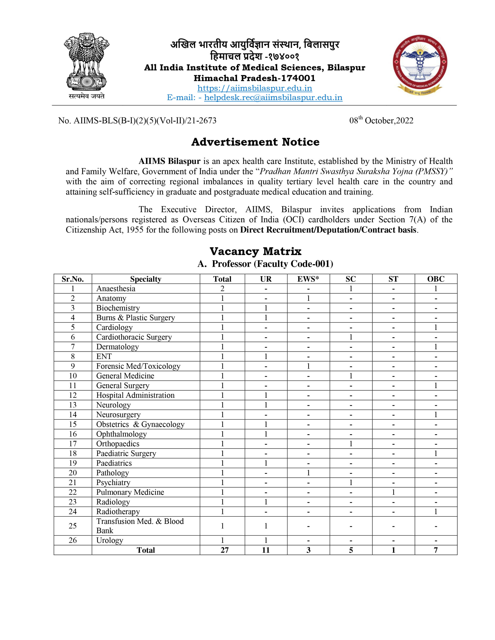 the website i.e. https://www.aiimsbilaspur.edu.in.