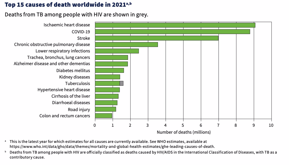 - Deaths from TB among people with HIV have been declining for many years and by 2024 had fallen 76% compared with 2010 worldwide.