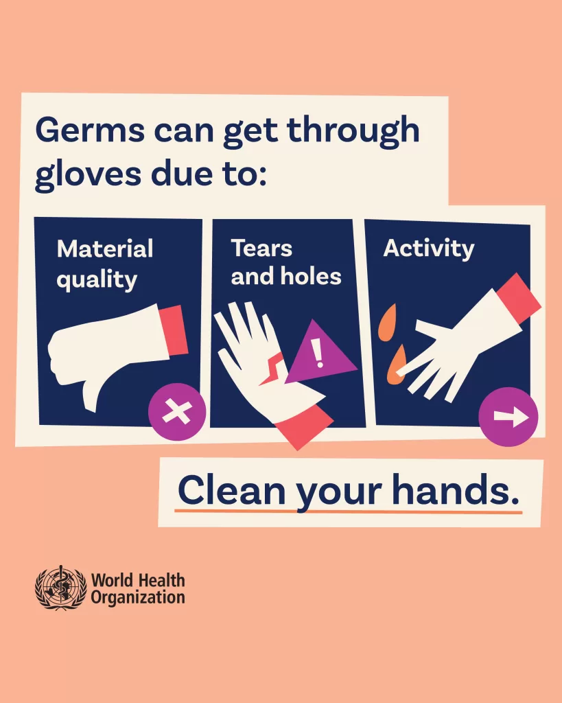 - Therefore, it is recognized and reinforced that at this time countries and health care facilities should continue to highly prioritize optimal hand hygiene practices (using the appropriate technique and according to the WHO 5 Moments) alongside appropriate glove use, including through greater awareness and supported by IPC practitioners as part of an IPC team and programme.