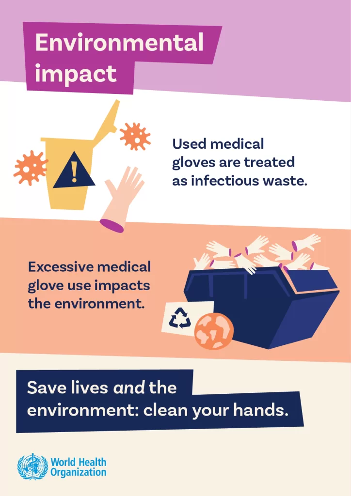 - Raise awareness of the environmental and climate impact of gloves on waste generation and management, especially when used unnecessarily.